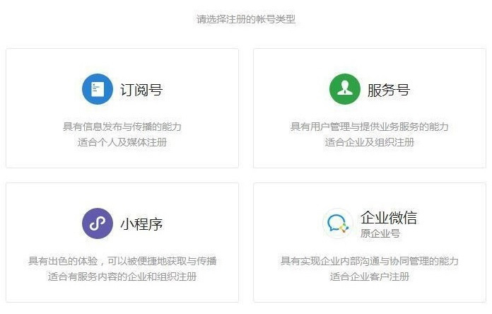 注:如果你需要做小程序,同時也需要訂閱號或者是服務(wù)號,宜興博路網(wǎng)絡(luò)見意你先注冊訂閱號或者是服務(wù)號,就算先不用,先注冊認(rèn)證下,這樣只要交一個認(rèn)證費(fèi)用認(rèn)證下訂閱號或者服務(wù)號,訂閱號或者服務(wù)號根據(jù)需要可以注冊其中一個,也可以兩個都注冊,都認(rèn)證,也可以只需要認(rèn)證一個,根據(jù)需要進(jìn)行認(rèn)證,每次年審時,只要年審公眾號交300元就行。然后小程序上就不需要再次提交資料交認(rèn)證費(fèi)了,因?yàn)榭梢栽谡J(rèn)證好的訂閱號或者服務(wù)號上復(fù)用小程序認(rèn)證資料,這樣小程序就不需要另外多花300認(rèn)證費(fèi)了,反之,如果先認(rèn)證了小程序,那是不能復(fù)用小程序認(rèn)證的信息再次認(rèn)證公眾號的,這樣話,需要兩邊交錢,小程序認(rèn)證后需要交300元,公眾號認(rèn)證也需要交300元,除非你只要注冊小程序,那就無所謂了。