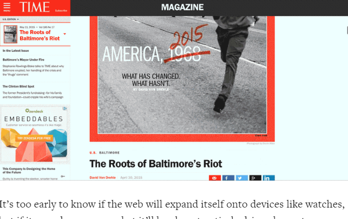 那些將文章分成多頁(yè)的網(wǎng)站估計(jì)馬上會(huì)明白,文章內(nèi)容應(yīng)該做成單頁(yè)的,哪怕很長(zhǎng)很長(zhǎng),甚至可以像時(shí)代雜志學(xué)習(xí),做成無(wú)限滾動(dòng)網(wǎng)頁(yè):